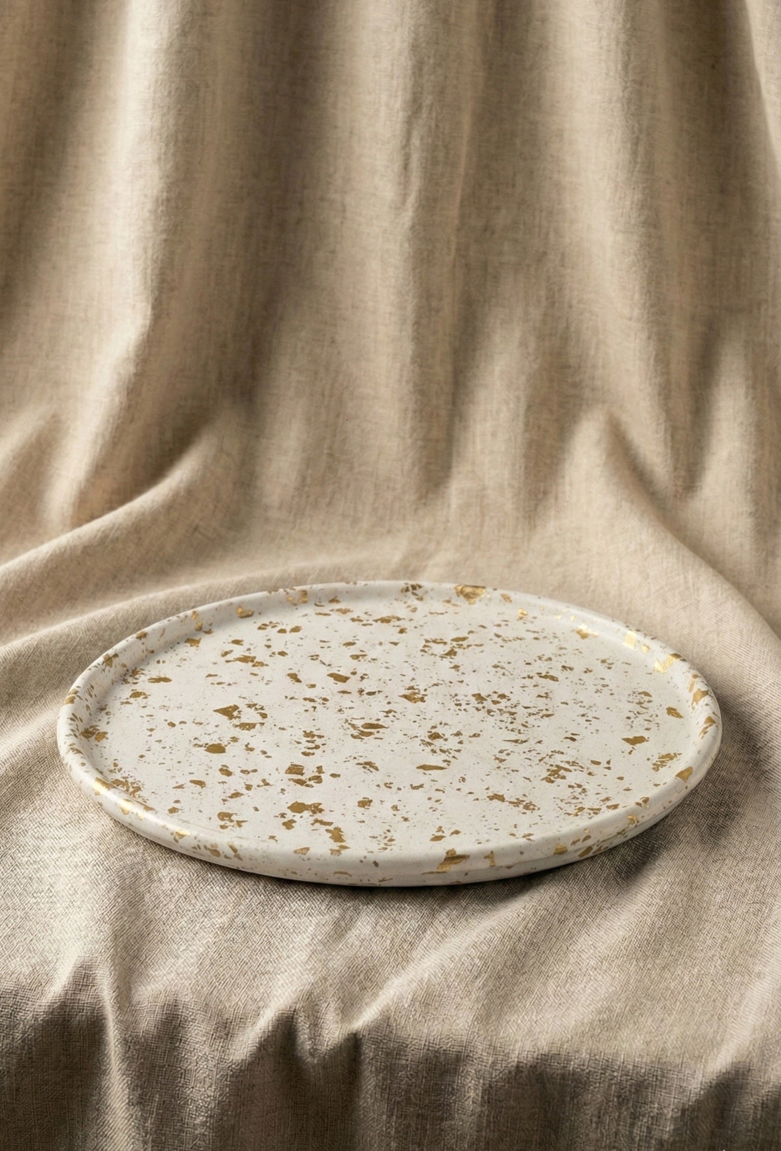 Diseño: Forma perfectamente circular y plana con un borde sutilmente elevado para contener tus objetos.