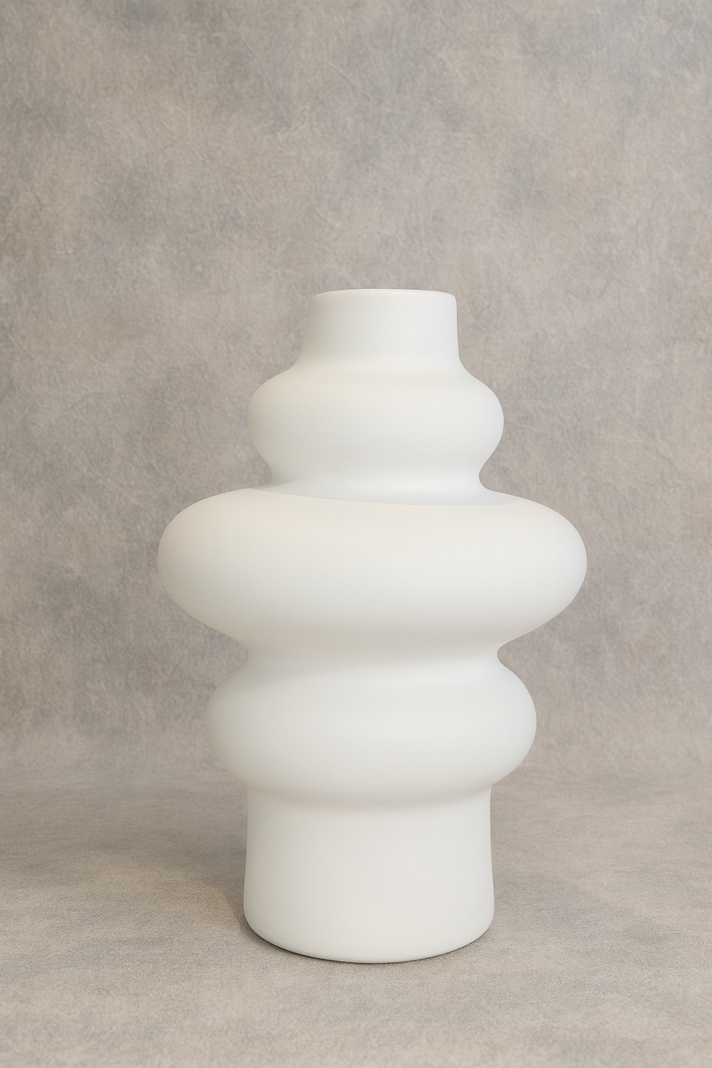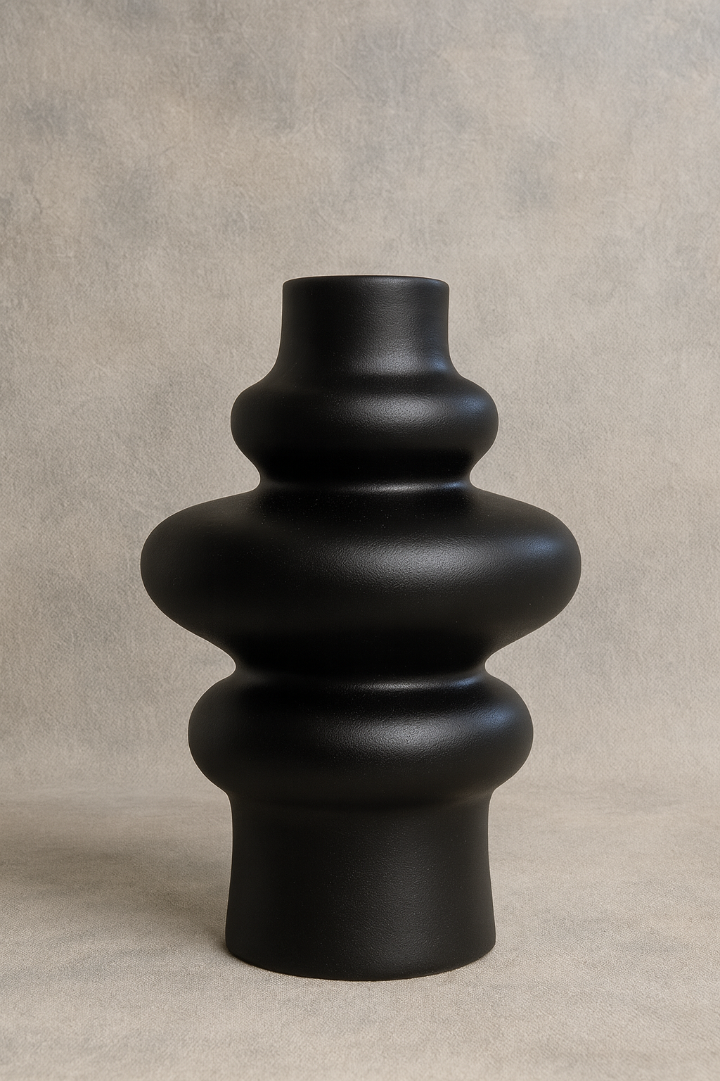 Su acabado en negro o blanco le confiere una textura suave y sofisticada, permitiendo que la luz juegue sutilmente con sus curvas. Es la pieza perfecta para "anclar" la decoración de una habitación, aportando peso visual y serenidad a tu consola, mesa de comedor o rincón de lectura.