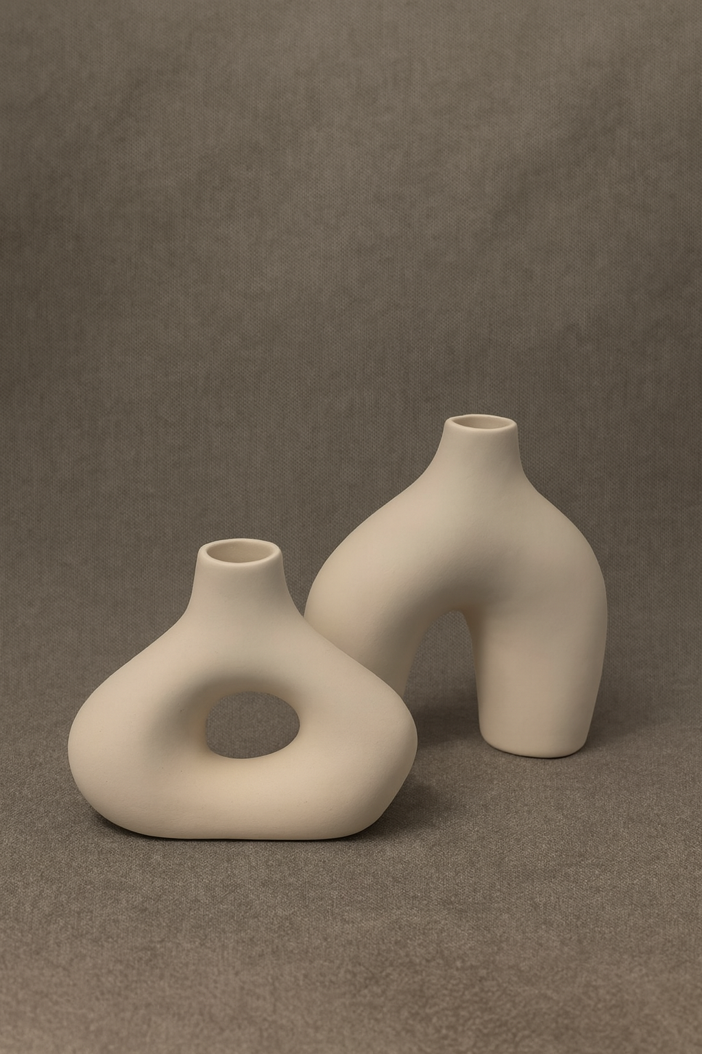 Eleva tu decoración al instante con el Set de Jarrones Nordicos. Este dúo dinámico combina arte y funcionalidad, presentando dos piezas de cerámica con siluetas abstractas que dialogan entre sí a la perfección.