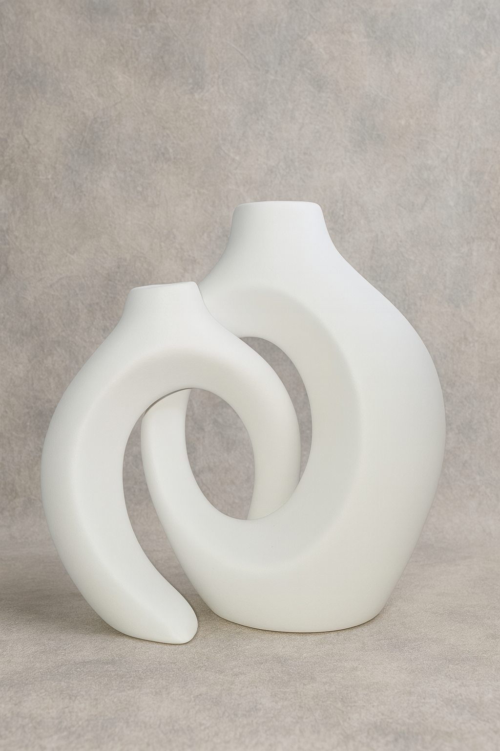 Celebra la belleza de la conexión. Este set de dos piezas ha sido creado bajo el concepto de la armonía visual; dos formas independientes que encuentran su equilibrio perfecto al estar juntas. Sus líneas suaves y redondeadas evocan un abrazo eterno o el fluir del agua, invitando a la calma y a la contemplación táctil.